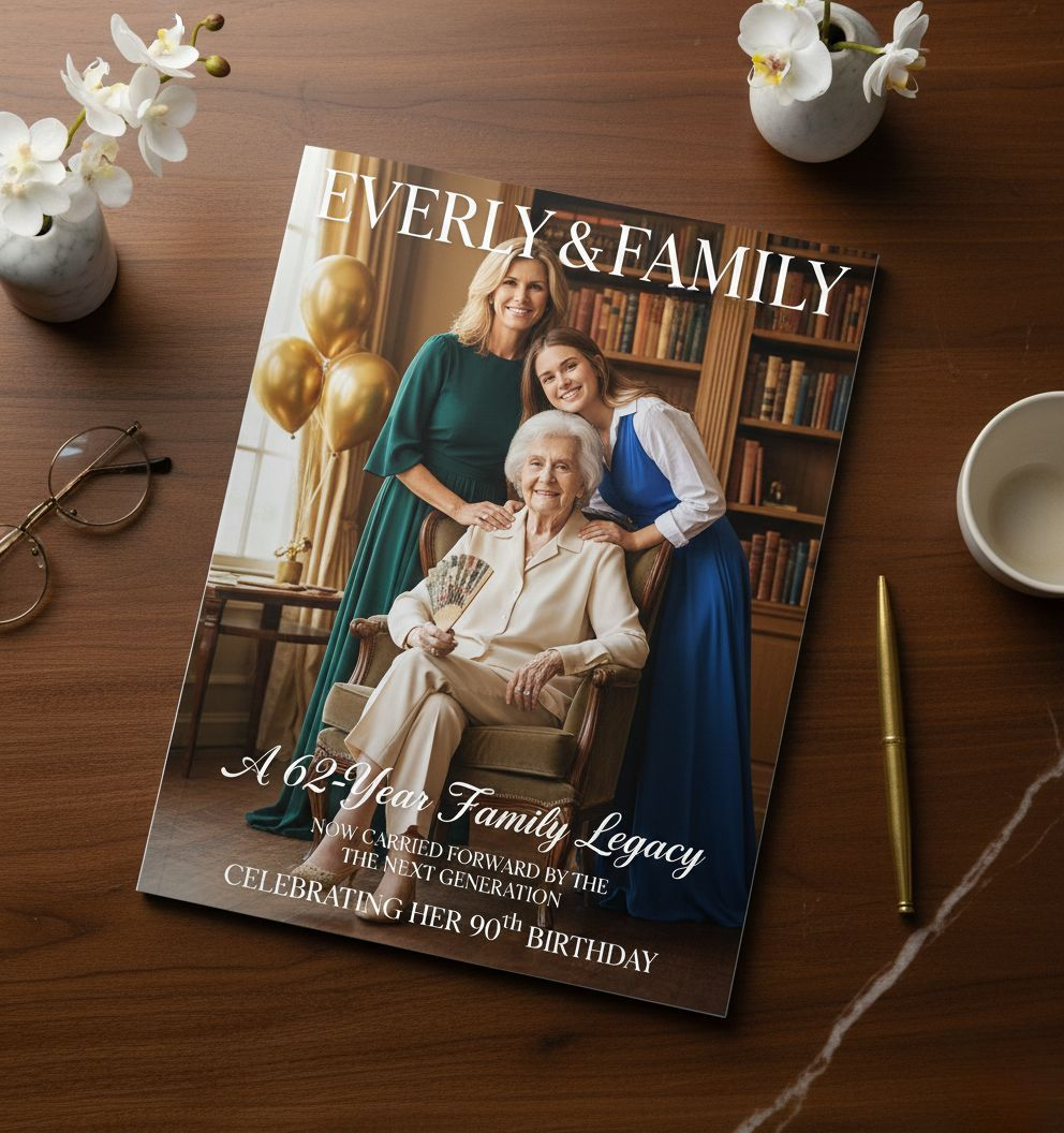 The woman you see on the cover — our founder, mother and grandmother — is celebrating her 90th year.